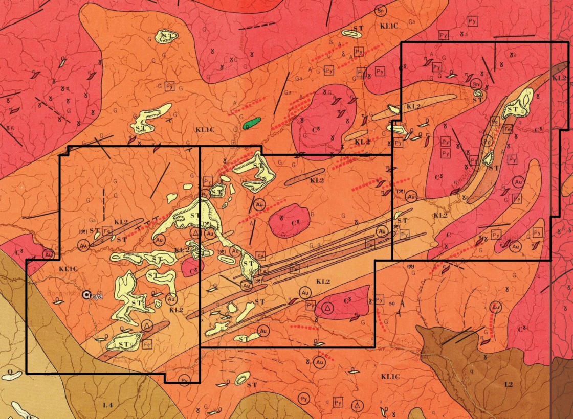 Two brown lithologies, in the SW and SE corners of the leases, belong to the Lindian cover