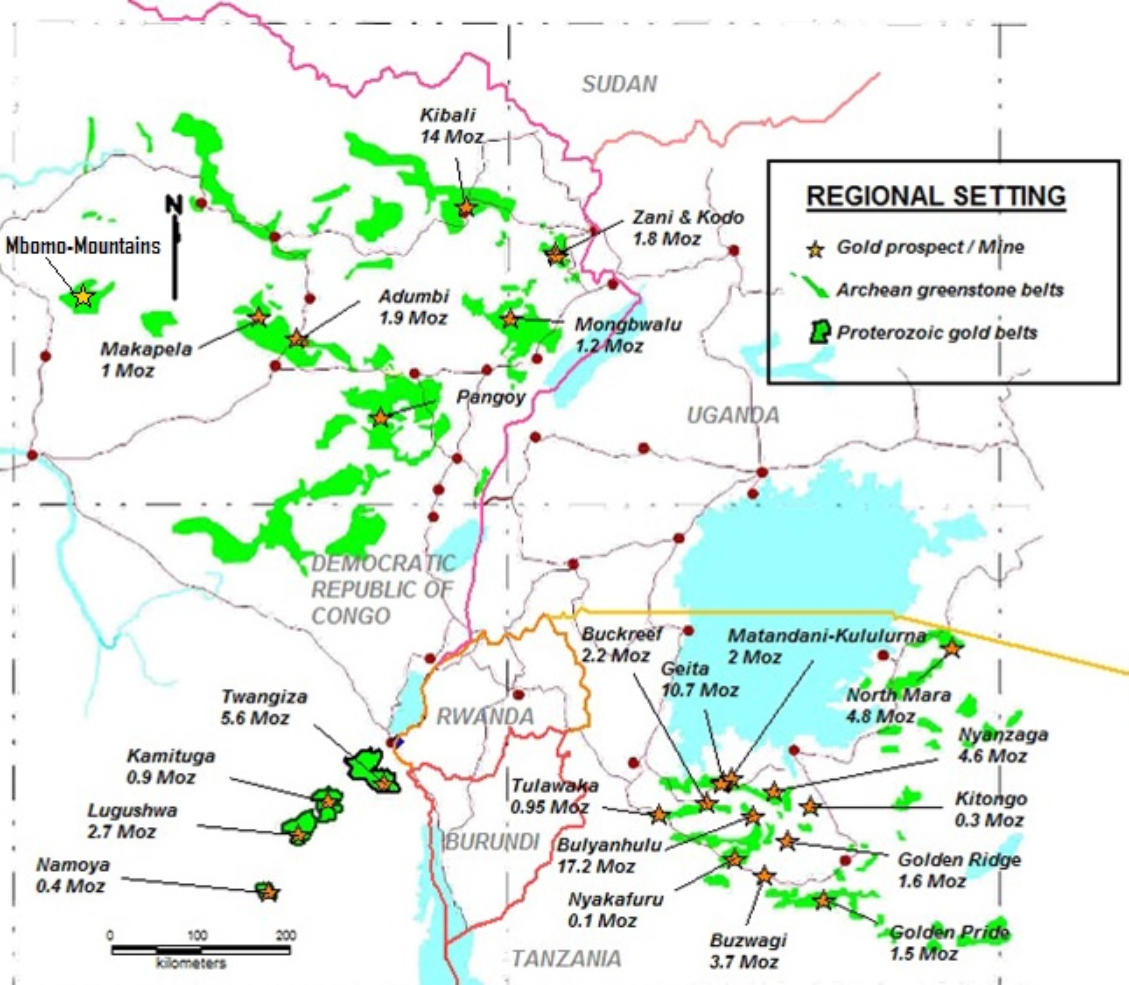 The “Tele Belt”, covered by the M'Bomo permits, belongs to a NNW rosary of similar “greenstone”